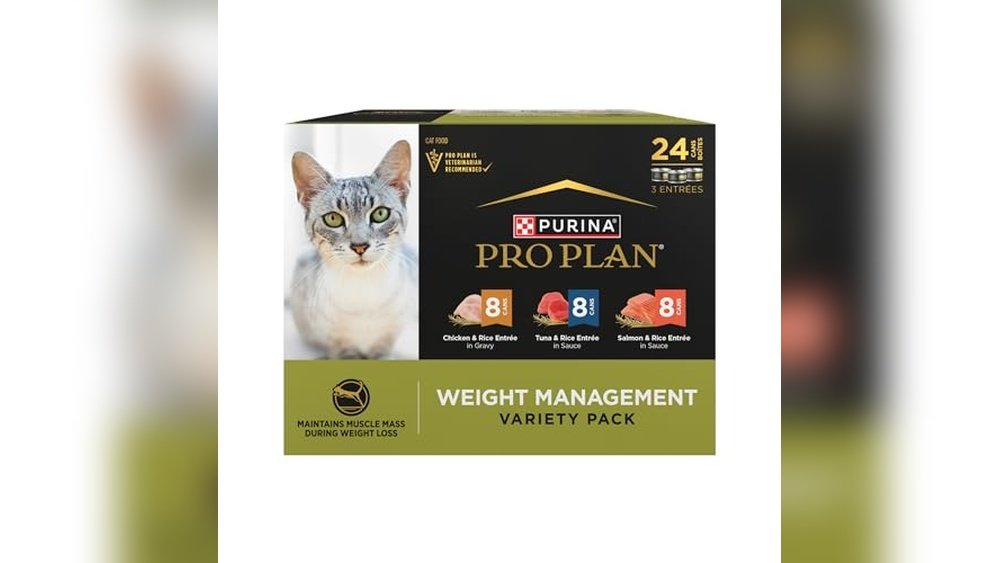 Purina Pro Plan contains balanced nutrients and controlled calories. It supports healthy weight loss while maintaining muscle mass. The variety pack offers enticing flavors to keep cats interested in their meals.